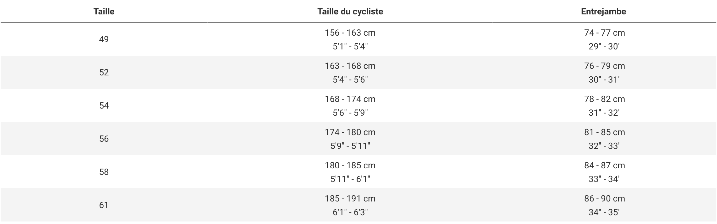 • Selle : Verse Short Comp, rails en acier, largeur de 155 mm (taille 49, 52) / largeur de 145 mm (taille 54, 56, 58, 61)