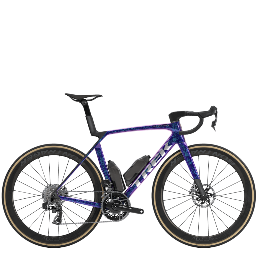 Le Madone SLR 9 AXS 8e gén. est un vélo de route en carbone haut de gamme OCLV Série 900, ultraléger et aérodynamique. Il affiche un poids incroyablement léger et est doté de tubes aérodynamiques. Cette configuration, faite pour la plus haute marche des podiums, s’équipe d’une transmission SRAM RED AXS E1 avec capteur de puissance, des roues en carbone Bontrager Aeolus RSL 51, d’un ensemble cintre/potence Trek RSL Aero en carbone, et de bidons et porte-bidons RSL Aero façonnés pour un meilleur aérodynamisme.