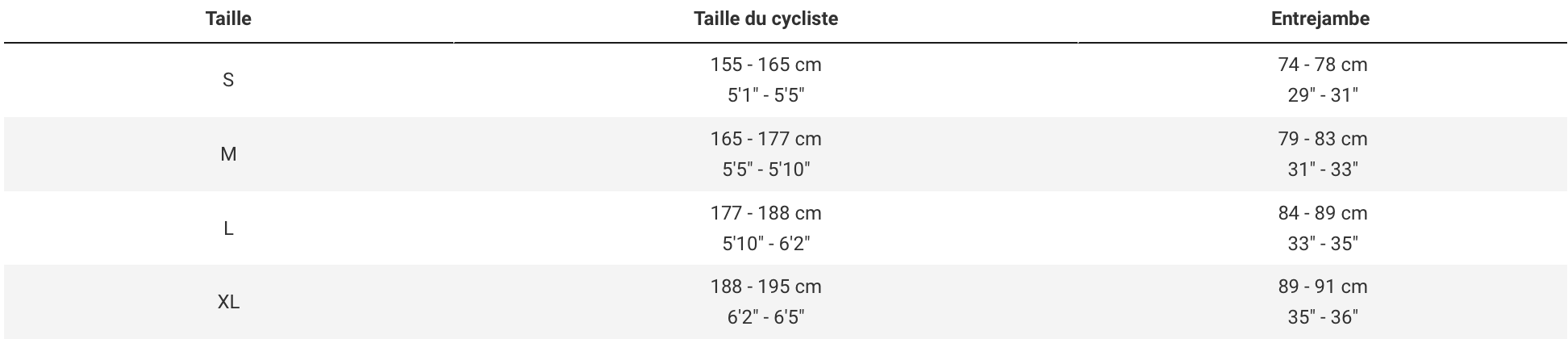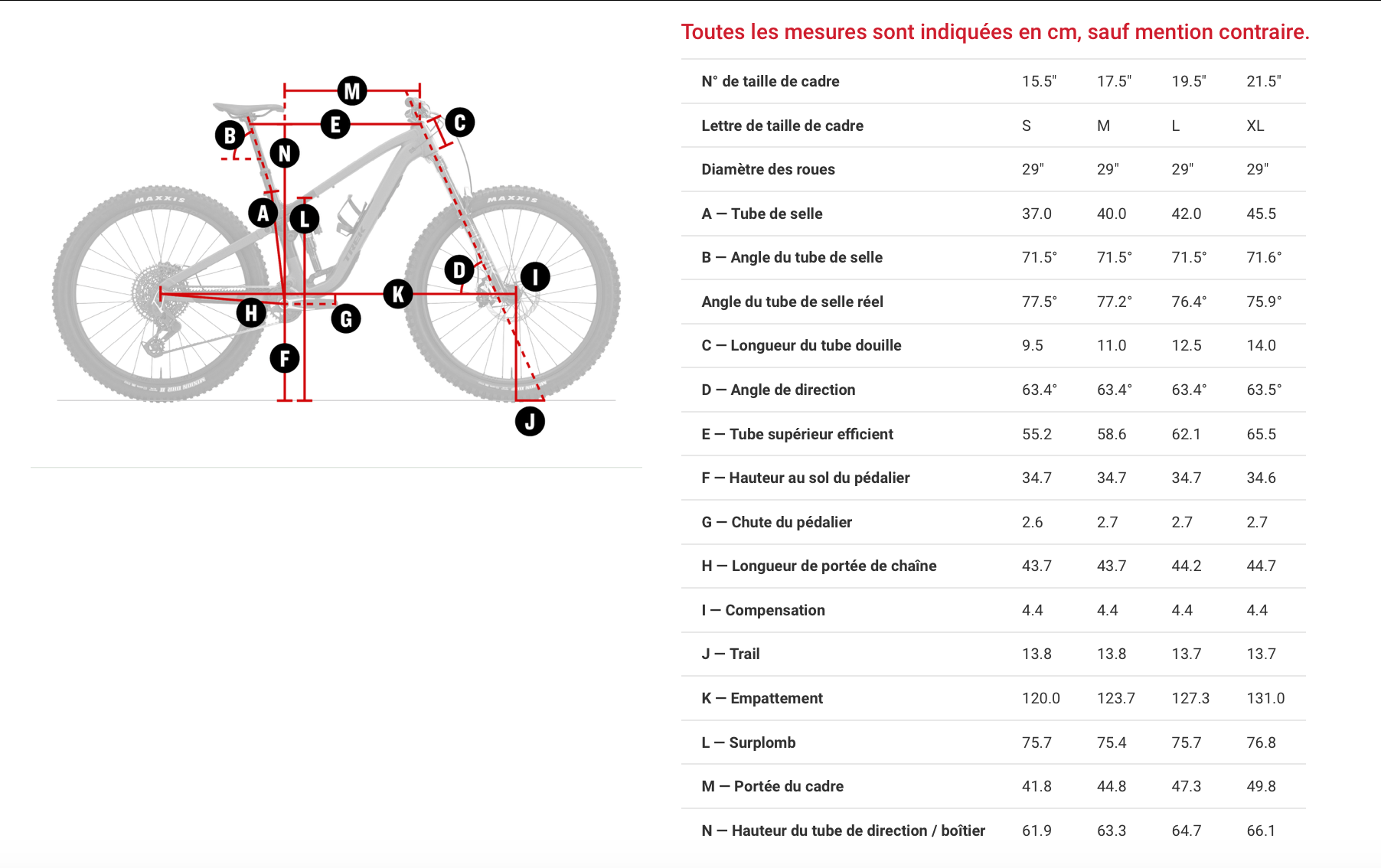 • Tige de selle : Bontrager Line Dropper, MaxFlow, acheminement interne, 34,9 mm, 150 mm de débattement, longueur de 410 mm (taille S), 170 mm de débattement, longueur de 450 mm (taille M), 200 mm de débattement, longueur de 515 mm (taille L, XL)