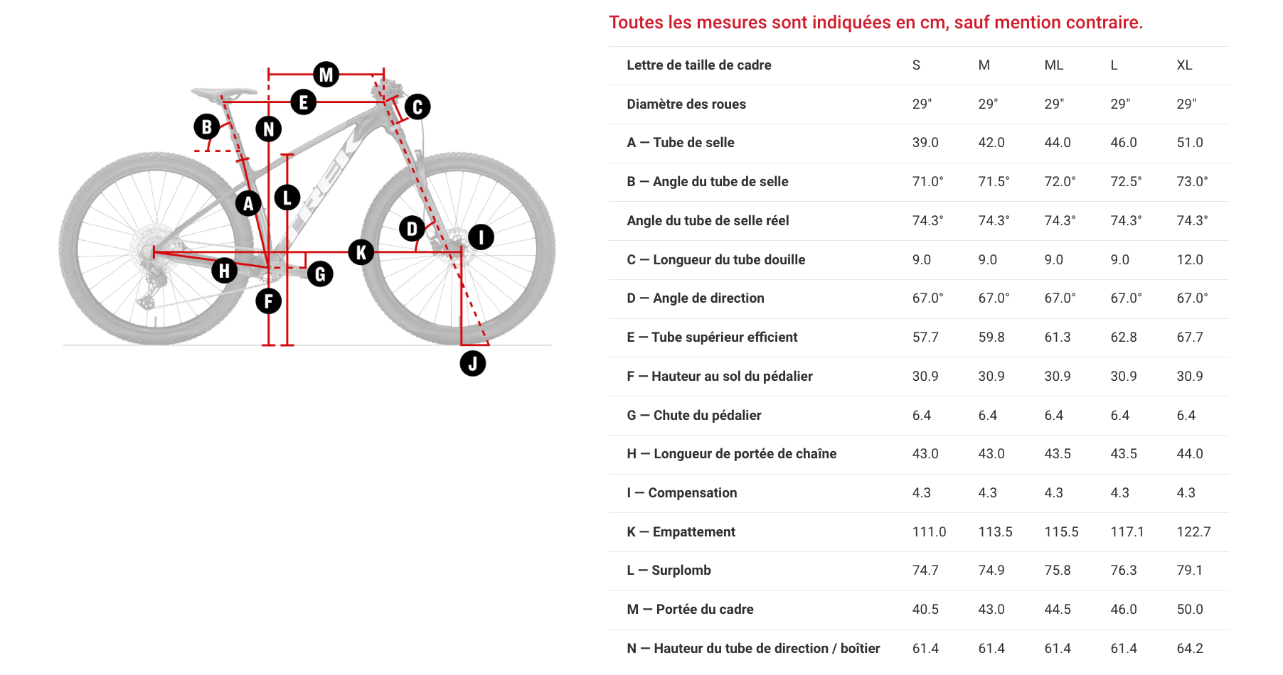 • Cintre : Bontrager Comp, alliage, 31,8 mm, élévation de 5 mm, largeur de 720 mm / Alliage Bontrager, 31,8 mm, élévation de 5 mm, largeur de 720 mm / Alliage Bontrager, 31,8 mm, élévation de 15 mm, largeur de 750 mm (taille ML, L, XL)